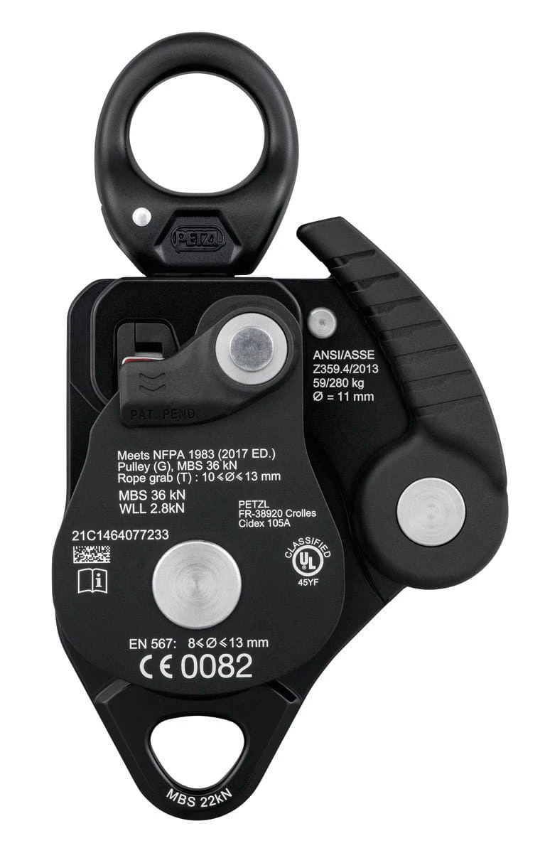 - Certyfikacja: CE EN 567, CE EN 12278 (częściowa), NFPA 2500 Pulley General Use, ANSI Z359.4 Synthetic Rope Tackle Block
