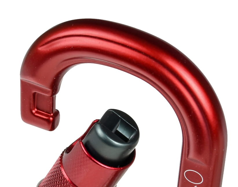 Automatyczna, trzystopniowa blokada zamka Trzystopniowy, automatyczny system blokowania zamka, który sprawdzi się w najbardziej złożonych systemach, także tych obejmujących przesuwające się liny. Wymaga on trzech ruchów do odblokowania (podniesienie + przekręcenie + naciśnięcie), dzięki czemu spełnia wymagania przemysłowej normy EN 362. Na korpusie zamka znajduje się ikona kłódki, której widoczność informuje o poprawnym zablokowaniu karabinka, a na samej blokadzie umieszczono żłobienia, ułatwiające operowanie karabinkiem w rękawiczkach.