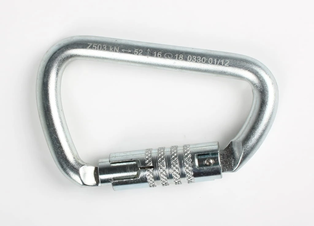 Automatyczna, trzystopniowa blokada zamka Trzystopniowy, automatyczny system blokowania zamka, który sprawdzi się w najbardziej złożonych systemach, także tych obejmujących przesuwające się liny. Wymaga on trzech ruchów do odblokowania (podniesienie + przekręcenie + naciśnięcie), dzięki czemu spełnia wymagania przemysłowej normy EN 362.