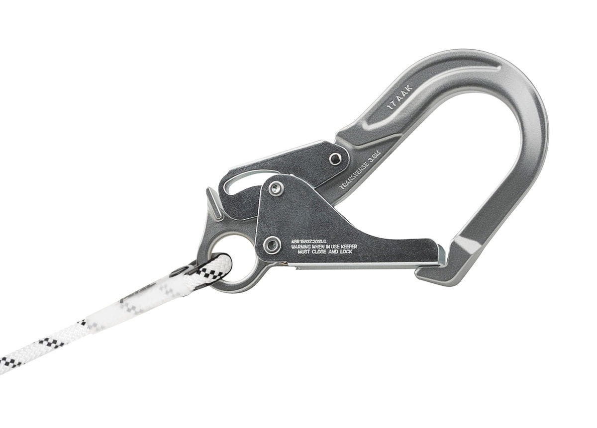 - Zastosowany łącznik jest idealny do wpinania w duże elementy konstrukcyjne, w liny stalowe oraz duże szczeble, co zwiększa wszechstronność użytkowania lonży.