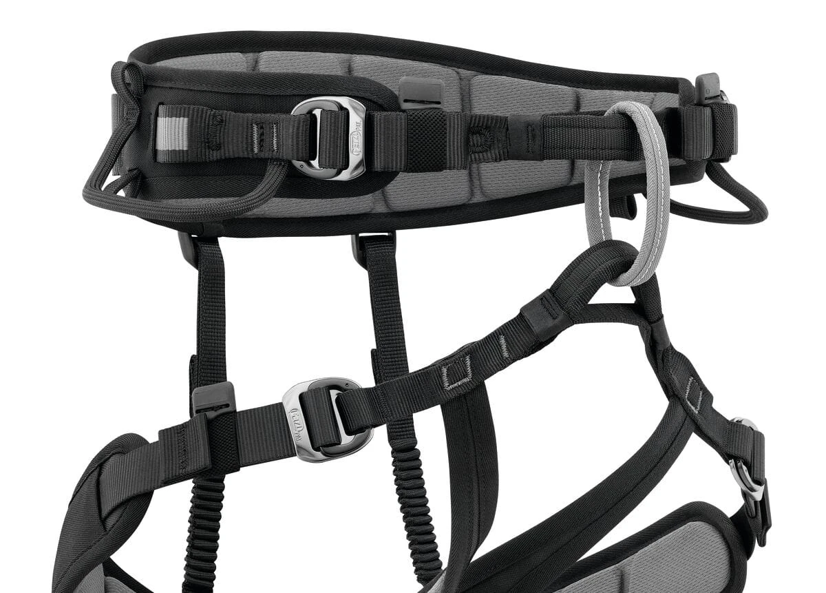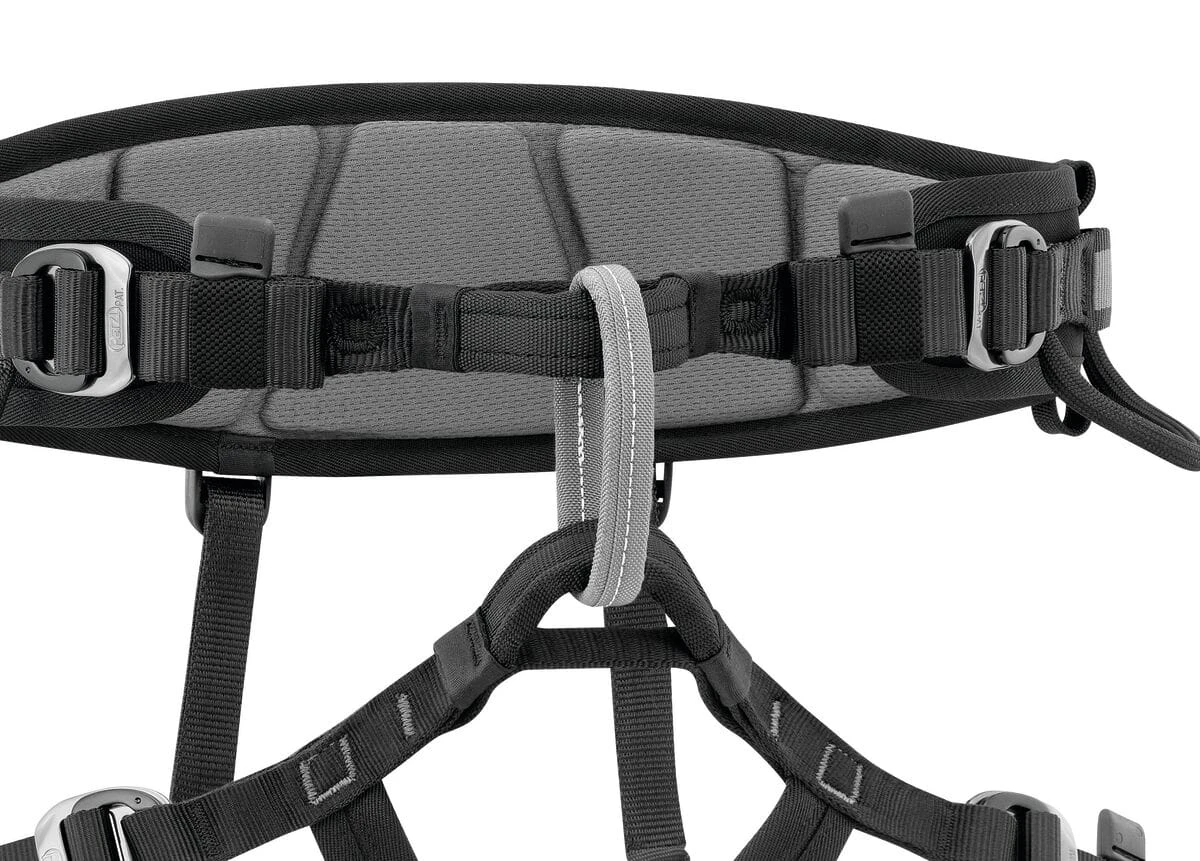 - Tekstylny przedni punkt wpinania zapewnia mobilność i komfort podczas marszu, co zwiększa wygodę przy długotrwałym wiszeniu.