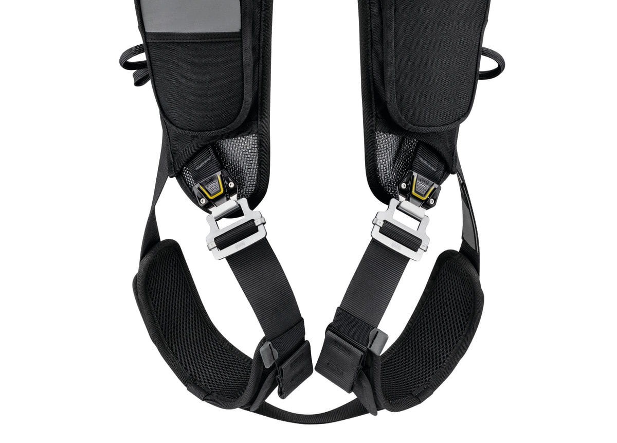 - Taśmy udowe i szelki z klamrami DOUBLEBACK dla łatwej regulacji.