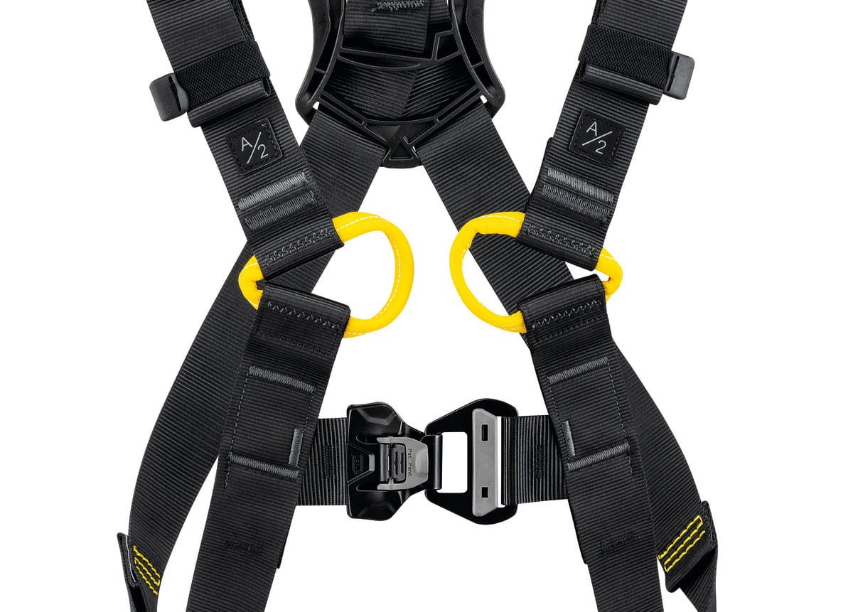 - Kolorowe taśmy (czarny/żółty) umożliwiają szybkie rozpoznanie górnej i dolnej części uprzęży.